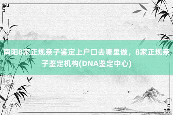 南阳8家正规亲子鉴定上户口去哪里做,8家正规亲子鉴定机构(DNA鉴定中心)