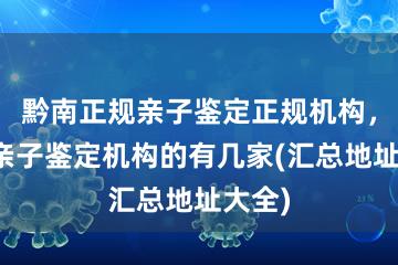 黔南正规亲子鉴定正规机构,正规亲子鉴定机构的有几家(汇总地址大全)