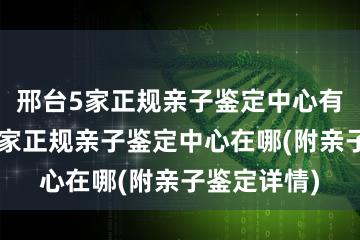 邢台5家正规亲子鉴定中心有哪几家,5家正规亲子鉴定中心在哪(附亲子鉴定详情)