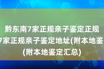 黔东南7家正规亲子鉴定正规机构,7家正规亲子鉴定地址(附本地鉴定汇总)