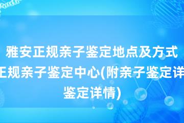 雅安正规亲子鉴定地点及方式,正规亲子鉴定中心(附亲子鉴定详情)