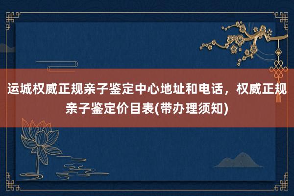 运城权威正规亲子鉴定中心地址和电话,权威正规亲子鉴定价目表(带办理须知)